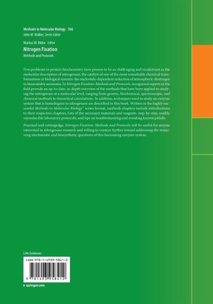 Practical and cutting-edge, Nitrogen Fixation: Methods and Protocols will be useful for anyone interested in nitrogenase research and willing to venture further toward addressing the remaining mechanistic and biosynthetic questions of this fascinating enzyme system.