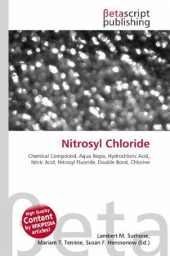 Please note that the content of this book primarily consists of articles available from Wikipedia or other free sources online. Nitrosyl chloride is the chemical compound NOCl. It is a yellow gas that is most commonly encountered as a decomposition product of aqua regia, a mixture of hydrochloric acid and nitric acid. The related nitrosyl halides nitrosyl fluoride, NOF, and nitrosyl bromide, NOBr, are also known. Although its formula is written NOCl, the structure is better represented ONCl. A double bond exists between N and O (distance = 1.16 Å) and a single bond between N and Cl (distance = 1.69 Å). The O-N-Cl angle is 113°. It also arises from the combination of hydrochloric and nitric acids according to the following reaction: HNO3 + 3 HCl Cl2 + 2 H2O + NOCl. Although this mixture was used for dissolving gold for a long time the first description of the gas was done by Edmund Davy in 1831