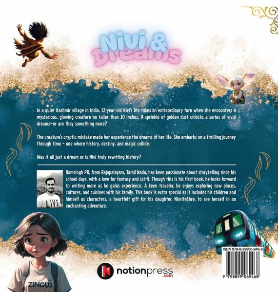 In a quiet Kashmir village in India, 12-year-old Nivi's life takes an extraordinary turn when she encounters a mysterious, glowing creature no taller than 10 inches. A sprinkle of golden dust unlocks a series of vivid dreams-or are they something more? The creature's cryptic mistake made her experience the dreams of her life . She embarks on a thrilling journey through time - one where history, destiny, and magic collide. Was it all just a dream or is Nivi truly rewriting history?