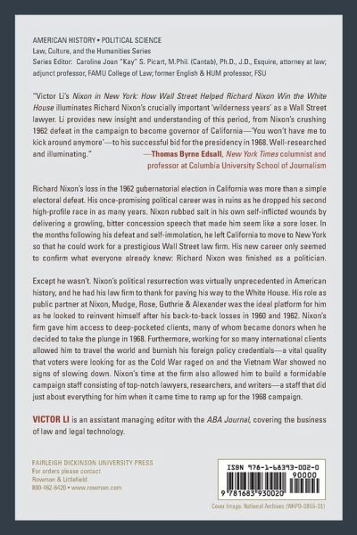 This book details Richard Nixon’s years as a lawyer on Wall Street as a time of rebirth and reinvention, and how his firm served as a springboard to his successful comeback in 1968.