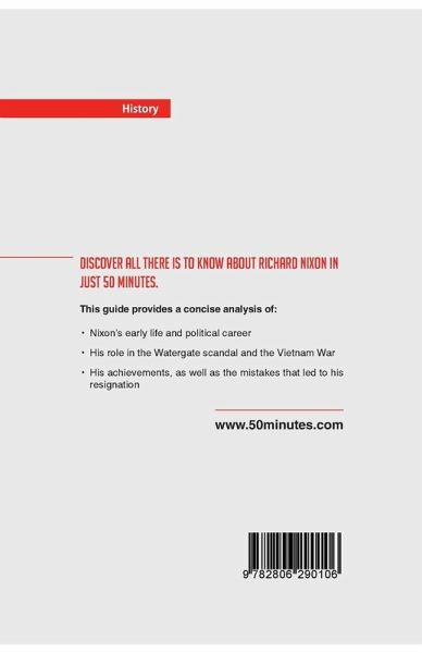 Keen to learn but short on time? Get to grips with the career of Richard Nixon in next to no time with this concise guide. 50Minutes.com provides a clear and engaging analysis of the life and political career of Richard Nixon. In 1974, Nixon made history as the first ever US president to resign from office. Although he is now best known for the Watergate scandal that led to his downfall, he did have some successes as president: in particular, he was responsible for ending US involvement in the Vietnam War and improving relations between America and China. In just 50 minutes you will: ¿ Learn more about Nixon¿s life, from his childhood to his death, as well as discovering more about his time as President of the United States ¿ Understand Nixon¿s role in the Watergate scandal and the Vietnam War, and how these situations affected his presidency ¿ Analyse his achievements as well as the mistakes that led to his resignation, making him the only US president in history to resign from his duties ABOUT 50MINUTES.COM History & Culture 50MINUTES.COM will enable you to quickly understand the main events, people, conflicts and discoveries from world history that have shaped the world we live in today. Our publications present the key information on a wide variety of topics in a quick and accessible way that is guaranteed to save you time on your journey of discovery.