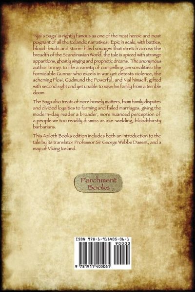 ‘Njal’s Saga’ is rightly famous as one of the most heroic, and most poignant, of all the Icelandic narratives. Epic in scale, with battles, blood-feuds and storm-filled voyages that stretch across the breadth of the Scandinavian World, the tale is spiced with strange apparitions, ghostly singing and prophetic dreams. The anonymous author brings to life a variety of compelling personalities: the formidable Gunnar who excels in war yet detests violence, the scheming Flosi, Gudmund the Powerful, and Njal himself, gifted with second sight yet unable to save his family from a terrible doom. The Saga also treats of more homely matters, from family disputes and divided loyalties to farming and failed marriages, giving the modern-day reader a broader, more nuanced perception of a people we too readily dismiss as axe-wielding, bloodthirsty barbarians. This Aziloth Books edition includes both an introduction to the tale by its translator Professor Sir George Dasent, and a map of Viking Iceland.