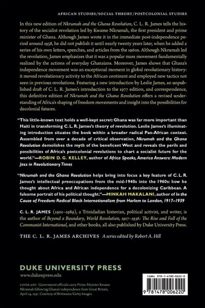 In this new edition of Nkrumah and the Ghana Revolution, C. L. R. James tells the history of the socialist revolution led by Kwame Nkrumah, the first president and prime minister of Ghana. Although James wrote it in the immediate post-independence period around 1958, he did not publish it until nearly twenty years later, when he added a series of his own letters, speeches, and articles from the 1960s. Although Nkrumah led the revolution, James emphasizes that it was a popular mass movement fundamentally realized by the actions of everyday Ghanaians. Moreover, James shows that Ghana's independence movement was an exceptional moment in global revolutionary history: it moved revolutionary activity to the African continent and employed new tactics not seen in previous revolutions. Featuring a new introduction by Leslie James, an unpublished draft of C. L. R. James's introduction to the 1977 edition, and correspondence, this definitive edition of Nkrumah and the Ghana Revolution offers a revised understanding of Africa's shaping of freedom movements and insight into the possibilities for decolonial futures.