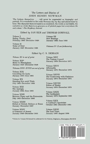 A scholarly edition of the letters and diaries of John Henry Newman. The edition presents an authoritative text, together with an introduction, commentary notes, and scholarly apparatus.