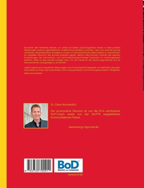 Dieses Buches macht Sie vertraut mit den verschiedenen Möglichkeiten und Wegen, die uns offenstehen, um den Rapport mit einem anderen Menschen herzustellen, aufrecht zu erhalten und zu vertiefen. Dies heißt nichts anderes, als zwischenmenschliche Beziehungen durch NLP und mit Kommunikation zu entwickeln und gilt natürlich nicht nur für Online-Kontakte. Jedoch besitzen diese aufgrund der fehlenden nonverbalen Signale doch deutlich andere Eigenschaften als direkte Begegnungen.Sie lernen daher sehr gewiefte Techniken kennen, die auf hohem psychologischen Niveau operieren und Ihnen damit Möglichkeiten an die Hand geben, sehr subtil zu durchschauen, mit wem Sie es gerade zu tun haben, und in welchem State sich diese Person aktuell befindet. Dadurch sind Sie imstande, die jeweils optimale Strategie anzuwenden, um Ihre persönlichen Ziele bestmöglich zu verwirklichen, die Sie sich aus der Online-Interaktion mit speziell diesem Menschen zu genau diesem Zeitpunkt erwarten.Hierbei sind kaumGrenzen vorhanden, und es ist weit mehr erreichbar, als Sie sich bislang vorgestellt hatten. Diese Erfahrungen werden sich obendrein noch verstärken, sofern Sie begeistert am Ball bleiben.Ein spezieller Abschnitt des Buches analysiert darüber hinaus, inwiefern die rasante Entwicklung der Informations- und Kommunikationstechnologie inzwischen völlig neue Chancen und Herausforderungen eröffenet, um die erfolgreichen Erfahrungen des Coachings mit NLP jetzt auch über diese dynamischen Wege verfügbar zu machen. Dabei ist das ausschlaggebende Anliegen stets, pragmatische und oft überraschende Lösungsvorschläge zu entwickeln.Jedes Kapitel wird in bewährter Weise ergänzt durch zahlreiche Beispiele und Übungen, die es erlauben, das neue Wissen sofort auszuprobieren. Denn eines ist stets besonders wichtig: Mit viel Spaß der eigenen Flexibilität und Kreativität freien Raum zur Entfaltung zu geben. Praxis kompakt.Website: www.energy-hypnose.de