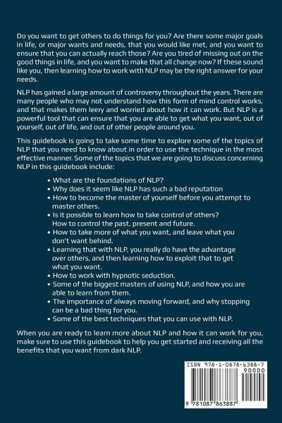 Do you want to get others to do things for you? Are there some major goals in life, or major wants and needs, that you would like met, and you want to ensure that you can actually reach those? Are you tired of missing out on the good things in life, and you want to make that all change now? If these sound like you, then learning how to work with NLP may be the right answer for your needs. Do you want to get others to do things for you? Are there some major goals in life, or major wants and needs, that you would like met, and you want to ensure that you can actually reach those? Are you tired of missing out on the good things in life, and you want to make that all change now? If these sound like you, then learning how to work with NLP may be the right answer for your needs. When you are ready to learn more about NLP and how it can work for you, make sure to use this guidebook to help you get started and receiving all the benefits that you want from dark NLP.
