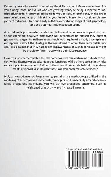 Perhaps you are interested in acquiring the skills to exert influence on others. Are you among those individuals who are growing weary of being subjected to manipulative tactics? It may be advisable for you to acquire proficiency in the art of manipulation and employ this skill to your benefit. Presently, a considerable majority of individuals lack familiarity with the intricate workings of dark psychology and the potential influence it can exert. A considerable portion of our verbal and behavioral actions occur beyond our conscious cognition; however, employing NLP techniques on oneself may present greater challenges. As an illustration, should you inquire of a highly accomplished entrepreneur about the strategies they employed to attain their remarkable success, it is possible that they harbor limited awareness of such techniques or might be unable to furnish you with a definitive response. Have you ever contemplated the phenomenon wherein certain individuals consistently find themselves at advantageous junctures, while others consistently miss out on opportune moments? What is the scientific rationale behind the achievements of individuals? On what basis can you presume achievement? NLP, or Neuro-Linguistic Programming, pertains to a methodology utilized in the modeling of accomplished individuals, managers, and leaders. By accurately emulating prosperous individuals, you will achieve analogous outcomes, such as heightened productivity and increased income.