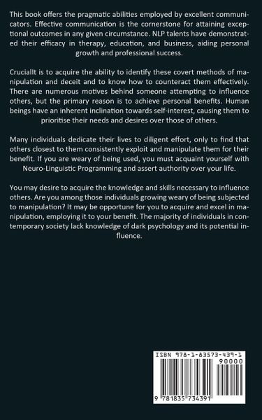 This book offers the pragmatic abilities employed by excellent communicators. Effective communication is the cornerstone for attaining exceptional outcomes in any given circumstance. NLP talents have demonstrated their efficacy in therapy, education, and business, aiding personal growth and professional success. CrucialIt is to acquire the ability to identify these covert methods of manipulation and deceit and to know how to counteract them effectively. There are numerous motives behind someone attempting to influence others, but the primary reason is to achieve personal benefits. Human beings have an inherent inclination towards self-interest, causing them to prioritise their needs and desires over those of others. Many individuals dedicate their lives to diligent effort, only to find that others closest to them consistently exploit and manipulate them for their benefit. If you are weary of being used, you must acquaint yourself with Neuro-Linguistic Programming and assert authority over your life. You may desire to acquire the knowledge and skills necessary to influence others. Are you among those individuals growing weary of being subjected to manipulation? It may be opportune for you to acquire and excel in manipulation, employing it to your benefit. The majority of individuals in contemporary society lack knowledge of dark psychology and its potential influence.
