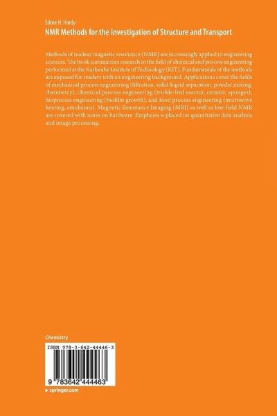 Methods of nuclear magnetic resonance (NMR) are increasingly applied in engineering sciences. The book summarizes research in the field of chemical and process engineering performed at the Karlsruhe Institute of Technology (KIT). Fundamentals of the methods are exposed for readers with an engineering background. Applications cover the fields of mechanical process engineering (filtration, solid-liquid separation, powder mixing, rheometry), chemical process engineering (trickle-bed reactor, ceramic sponges), bioprocess engineering (biofilm growth), and food process engineering (microwave heating, emulsions). Magnetic Resonance Imaging (MRI) as well as low-field NMR are covered with notes on hardware. Emphasis is placed on quantitative data analysis and image processing.