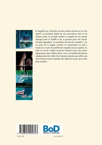 Il s'appelle Luc, il fait plus de deux mètres de haut et est très sportif. La première moitié de son curriculum vitae est de couleur noire, la seconde moitié est remplie de son amour onirique pour sa famille et de sa passion pour son travail. Certains l'appellent " le cauchemar de tous les criminels ", car au cours de sa longue carrière, le commissaire en chef a mené avec succès de nombreuses enquêtes sans exception. Sa série de succès semble menacée lorsqu'il trouve des pistes importantes dans l'affaire Berta. Lui et sa famille deviennent soudainement les cibles d'un homme puissant qui utilise une série d'astuces pour atteindre des objectifs encore peu clairs pour la police.