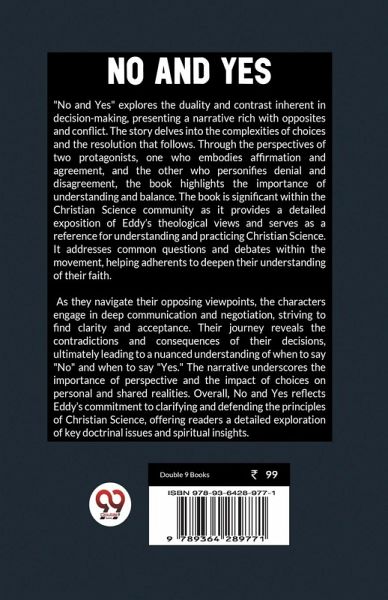 "No and Yes" explores the duality and contrast inherent in decision-making, presenting a narrative rich with opposites and conflict. The story delves into the complexities of choices and the resolution that follows. Through the perspectives of two protagonists, one who embodies affirmation and agreement, and the other who personifies denial and disagreement, the book highlights the importance of understanding and balance. The book is significant within the Christian Science community as it provides a detailed exposition of Eddy's theological views and serves as a reference for understanding and practicing Christian Science. It addresses common questions and debates within the movement, helping adherents to deepen their understanding of their faith. As they navigate their opposing viewpoints, the characters engage in deep communication and negotiation, striving to find clarity and acceptance. Their journey reveals the contradictions and consequences of their decisions, ultimately leading to a nuanced understanding of when to say "No" and when to say "Yes." The narrative underscores the importance of perspective and the impact of choices on personal and shared realities. Overall, No and Yes reflects Eddy's commitment to clarifying and defending the principles of Christian Science, offering readers a detailed exploration of key doctrinal issues and spiritual insights.