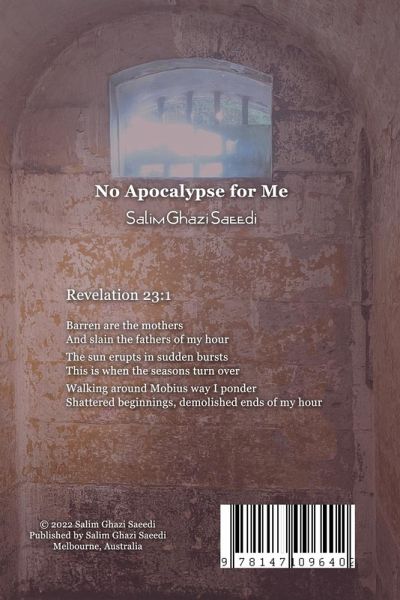 No Apocalypse for Me (2022) is a poetry collection on survival in the post-apocalyptic pandemic times. A continuation to the book At the Altar of the Lord Virus (2021). Written in Melbourne, the city with the world's longest lockdown, it explores dark corners of the soul confronting confinement and attempts to transcend and release by aids of an abstract mind and capability to love.