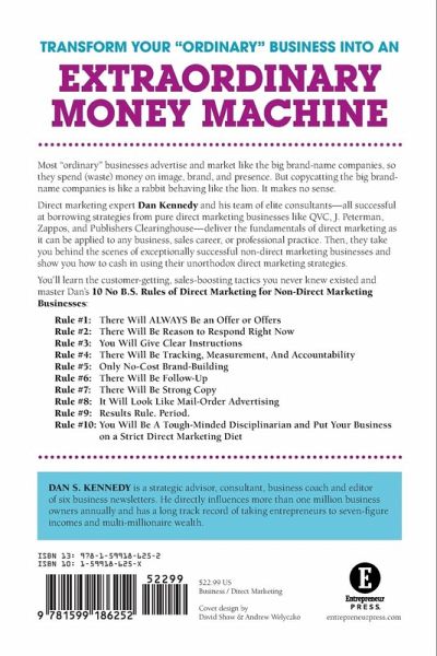 Kennedy dares marketers to dramatically simplify their marketing, refocusing on what works. Updated to address the newest media and marketing methods, this marketing master plan -- from marketing master Kennedy--delivers a short list of radically different, little-known, profit-proven direct mail strategies for ANY business. Strategies are illustra