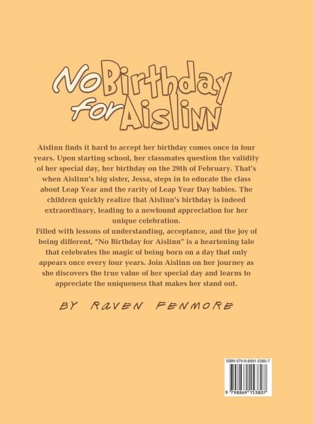 No Birthday for Aislinn is a storybook that teaches children about Leap Year in a way that is sure to makes learning fun. Young Aislinn is sad because she feels that she is being left out of birthday celebrations. As she learns about Leap Year Day, she realizes that she is a "Leapling", one of the unique children who only have a birthday once every four years. No Birthday for Aislinn is a wonderful tool for elementary school teachers who are looking for a way to engage their classroom before introducing the concept of Leap Year to their class.