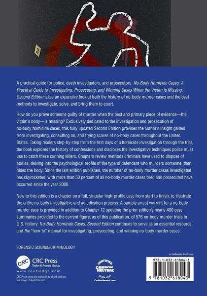 A practical guide for police, death investigators, and prosecutors, No-Body Homicide Cases: A Practical Guide to Investigating, Prosecuting, and Winning Cases When the Victim is Missing, Second Edition takes an expansive look at both the history of no-body murder cases and the best methods to investigate, solve, and bring them to court.