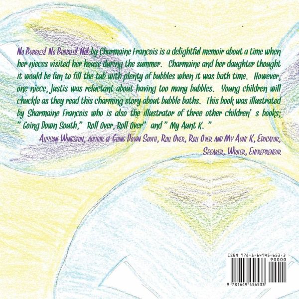 No Bubbles! No Bubbles! No! is a book that was created to share the fun that my daughter, my nieces and I shared during one summer; it was one of the funniest times that we shared as a family of girls.