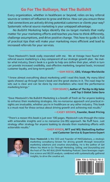 Every organization, whether in healthcare or beyond, relies on key referral sources or centers of influence to grow and thrive. How can you ensure these vital connections are actively driving potential customers or clients your way? Systematic referral source marketing is your untapped advantage. No Bullsh!t Marketing helps identify the six target markets that really matter for your marketing efforts and teaches you how to think differently, challenge assumptions, and drive positive change. This how-to guide is full of practical tips that will make your marketing more efficient and lead to increased referrals for your services.