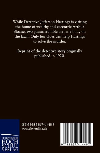 While Detective Jefferson Hastings is visiting the home of wealthy and eccentric Arthur Sloane, two guests stumble across a body on the lawn. Only few clues can help Hastings to solve the murder. Reprint of the detective story originally published in 1920.
