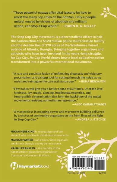 A collection of essays from the Stop Cop City movement on the fight for police abolition and for a liveable planet for all, with gripping reporting from activists on the ground and rousing articles from renowned radical academics The Stop Cop City movement is a decentralized effort to stop the construction of a $120 million police training facility and the destruction of 170 acres of the Weelaunee Forest outside of Atlanta, Georgia. This is the first collection of essays bringing together organizers and activists who have been involved in the years-long struggle to Stop Cop City. Connecting movements for environmental justice, police abolition, and Indigenous sovereignty, this expansive collection highlights the strategy, tactics, and ideologies that transformed a local collective action into a powerful international movement. Featuring the voices of forest defenders, environmental justice advocates, political prisoners, Indigenous activists, abolitionists, educators, legal scholars, and academics, these wide-ranging essays explore the history of the intersectional movement, the diverse tactics embraced by activists, tributes to Tortuguita, the 26-year-old queer Indigenous forest defender murdered by Georgia State Patrol troopers, and the intense police and legal repression faced by organizers. Making critical connections between oppression and resistance at home and abroad, the movement to Stop Cop City has expanded to a fight against a Cop World.