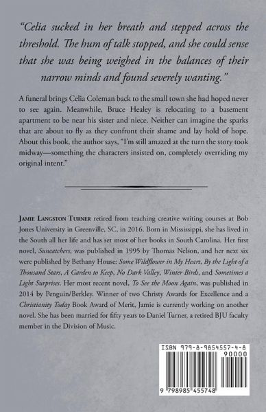 "Celia sucked in her breath and stepped across the threshold. The hum of talk stopped, and she could sense that she was being weighed in the balances of their narrow minds and found severely wanting." A funeral brings Celia Coleman back to the small town she had hoped never to see again. Meanwhile, Bruce Healey is relocating to a basement apartment to be near his sister and niece. Neither can imagine the sparks that are about to fly as they confront their shame and lay hold of hope. About this book, the author says, "I'm still amazed at the turn the story took midway-something the characters insisted on, completely overriding my original intent."