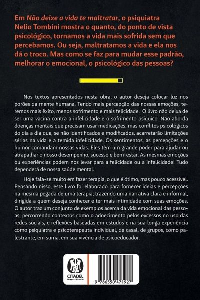 Nos textos apresentados nesta obra, o autor deseja colocar luz nos porões da mente humana. Tendo mais percepção das nossas emoções, teremos mais êxito, menos sofrimento e mais felicidade. O livro não deixa de ser uma vacina contra a infelicidade e o sofrimento psíquico. Não aborda doenças mentais que precisam usar medicações, mas conflitos psicológicos do dia a dia que, se não identificados e modificados, acarretarão limitações sérias na vida e a temida infelicidade. Os sentimentos, as percepções e o humor comandam nossas vidas. Eles têm um grande poder para ajudar ou atrapalhar o nosso desempenho, sucesso e bem-estar. As mesmas emoções ou experiências podem nos levar para a felicidade ou a infelicidade! Tudo dependerá de nossa saúde mental. Hoje fala-se muito em fazer terapia, o que é ótimo, mas pouco acessível. Pensando nisso, este livro foi elaborado para fornecer ideias e percepções na mesma pegada de uma terapia, trazendo uma narrativa clara e informal, dirigida a quem deseja conhecer e ter mais intimidade com suas emoções. O autor traz um conjunto de exemplos acerca da vida emocional das pessoas, percorrendo contextos como o adoecimento pelos excessos no uso das redes sociais, e reflexões baseadas em estudos e na sua longa experiência como psiquiatra e psicoterapeuta individual, de casal, de grupos, como palestrante, em suma, em sua vivência de psicoeducador.