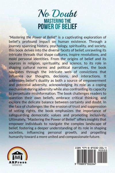 "Mastering the Power of Belief" is a captivating exploration of belief's profound impact on human existence. Through a journey spanning history, psychology, spirituality, and society, this book delves into the diverse facets of belief, unraveling its intricate threads that shape cultures, inspire revolutions, and mold personal identities. From the origins of belief and its sources in religion, spirituality, and science, to its role in shaping cultural norms and political narratives, the book navigates through the intricate web of convictions that influence our thoughts, decisions, and interactions. It addresses belief's duality as both a source of empowerment and potential adversity, acknowledging its role as a coping mechanism during adversity while also confronting its capacity to perpetuate misinformation. The book challenges readers to question their own beliefs, embrace critical thinking, and explore the delicate balance between certainty and doubt. In the face of challenges like the erosion of trust and suppression of voting rights, the book emphasizes the importance of safeguarding democratic values and promoting inclusivity. Ultimately, "Mastering the Power of Belief" offers insights that empower individuals to navigate the complex landscape of belief, fostering a deeper understanding of its role in shaping societies, influencing personal growth, and propelling humanity toward a more united and compassionate future.
