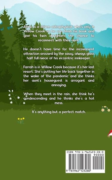 Tropes: Age Gap; Grumpy vs. Sunshine; Single Dad; Starting Over Alaric is a driven astrophysicist who's only in Willow Creek so he can finish his book and give his twin daughters the chance to reconnect with their aunt. He doesn't have time for the incovenient attraction aroused by the sassy, always glass half full niece of his eccentric innkeeper. Farrah is in Willow Creek because it's her last resort. She's putting her life back together in the wake of the pandemic and she thinks her aunt's houseguest is arrogant and annoying. A meet cute in the rain sets the stage for the barely banked bonfire raging as a backdrop to every one of their interactions.