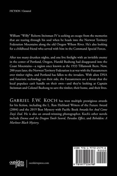 After too many drunken nights, and one live firefight with an invisible enemy in the center of Portland, Harold Bushong disappeared into the Oregon Coast Mountains. Now, two hundred years later, the Norwest Territory Federation is at war with the Fareasterners over timber rights, and Portland has fallen to the invaders. With alien DNA and futuristic technology on their side, the Fareasterners are a threat that the local populace can't handle on their own-good thing Colonel Bushong, along with the childhood friend he's reunited with, Captain William "Willy" Roberts Steinman IV, has returned. Can they help the people save not only the timber but their homes and their lives? Gabriel F. W. Koch used his own experiences in active-duty military and living in Oregon to write No Escaping the Storm. Fans of science fiction will love Koch's twist on the genre as a hyper-local issue explores universal themes.