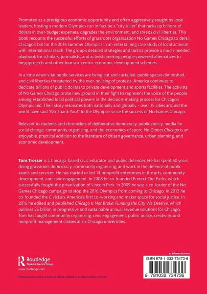 This book recounts the successful efforts of grassroots organization No Games Chicago to stop the 2016 Summer Olympics in a case study of local activism with international reach. Its strategies provide alternatives to tourism-centric megaprojects, addressing citizen governance, urban planning, and sports and economic development.