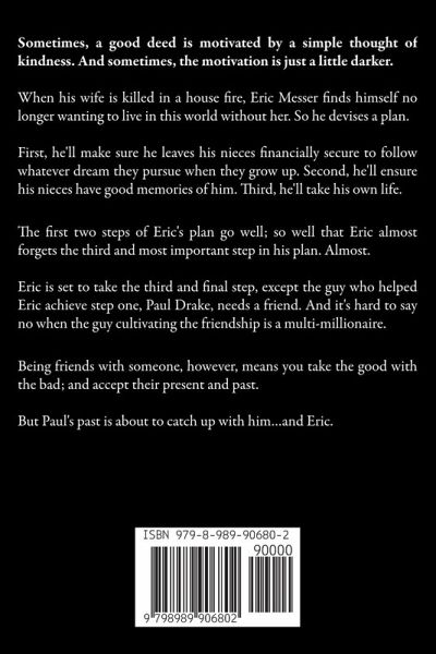 Sometimes, a good deed is motivated by a simple thought of kindness. And sometimes, the motivation is just a little darker. When his wife is killed in a house fire, Eric Messer finds himself no longer wanting to live in this world without her. So he devises a plan. First, he'll make sure he leaves his nieces financially secure to follow whatever dream they pursue when they grow up. Second, he'll ensure his nieces have good memories of him. Third, he'll take his own life. The first two steps of Eric's plan go well; so well that Eric almost forgets the third and most important step in his plan. Almost. Eric is set to take the third and final step, except the guy who helped Eric achieve step one, Paul Drake, needs a friend. And it's hard to say no when the guy cultivating the friendship is a multi-millionaire. Being friends with someone, however, means you take the good with the bad; and accept their present and past. But Paul's past is about to catch up with him...and Eric.