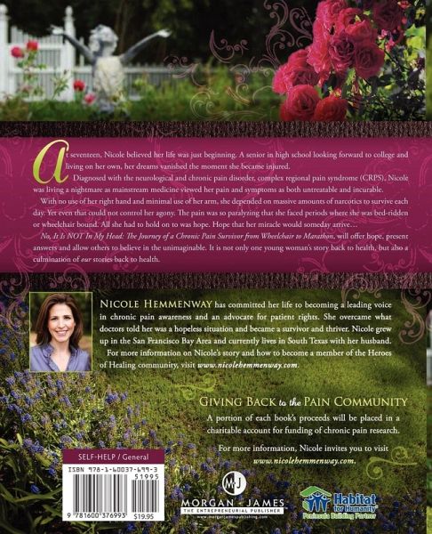 No, It is NOT in My Head: The Journey of a Chronic Pain Survivor tackles the themes of despair and shame while highlighting the underlining message of hope and perseverance. In 2002, mainstream medicine wrote Nicole Hemmenway off as being untreatable and incurable. No, It is NOT in My Head: The Journey of a Chronic Pain Survivor outlines her nine-year journey through the medical system and stresses the importance of a positive attitude. Dreams do come true.