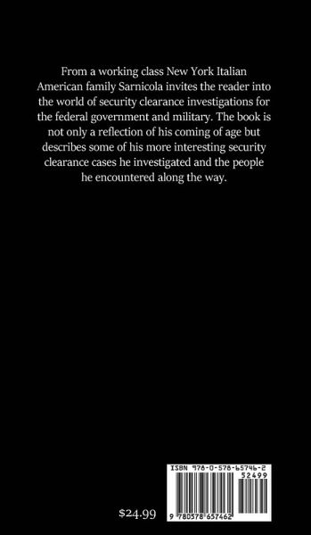 From a working class New York Italian American family Sarnicola invites the reader into the world of security clearance investigations for the federal government and military. The book is not only a reflection of his coming of age but describes some of his more interesting security clearance cases he investigated and the people he encountered along the way.