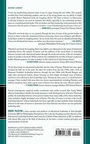 This book profiles the leadership behavior of ten proven leaders from many walks of life whose leadership style included a highly developed sense of humor. The idea, of course, would be to look at the overall leadership behavior of these individuals, but focus especially on their symbolic frame leadership behavior in the form of humor, to determine how their behavior can inform our own particular leadership style.