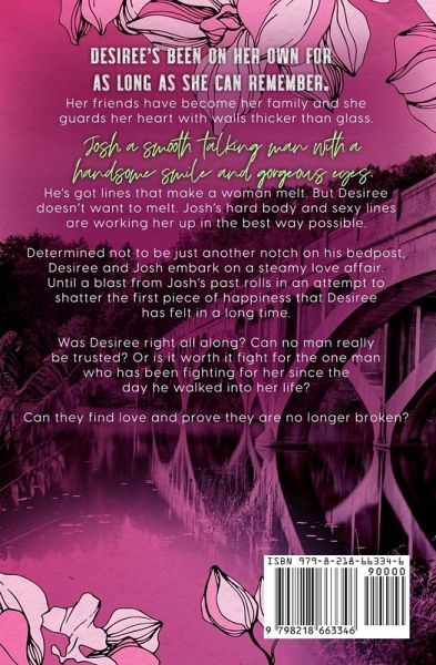 Desiree's been on her own for as long as she can remember. Her friends have become her family and she guards her heart with walls thicker than glass. Josh, a smooth talking man with handsome smile and gorgeous eyes. He's got lines that make a woman melt. But Desiree doesn't want to melt. Josh's hard body and sexy lines are working her up in the best way possible. Determined not to be just another notch on his bedpost, Desiree and Josh embark on a steamy love affair. Until a blast from Josh's past rolls in an attempt to shatter the first piece of happiness that Desiree has felt in a long time. Was Desiree right all along? Can no man really be trusted? Or is it worth it fight for the one man who has been fighting for her since the day he walked into her life? Can they find love and prove they are no longer broken?