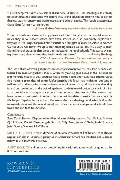 Acknowledgments Introduction Michael Q. McShane and Andy Smarick Chapter 1: Rural Poverty and the Federal Safety Net: Implications for Rural Educators Angela Rachidi Chapter 2: African-American Education in Rural Communities in the Deep South: "Making the Impossible Possible" Sheneka M. Williams Chapter 3: From Basketball to Overdose Capital: The Story of Rural America, Schools, and the Opioid Crisis Clayton Hale and Sally Satel Chapter 4: The Power of Place: Rural Identity and the Politics of Rural School Reform Sara Dahill-Brown and Ashley Jochim Chapter 5: A Statistical Portrait of Rural Education in America Nat Malkus Chapter 6: School Finance in Rural America James V. Shuls Chapter 7: Staffing America's Rural Schools Daniel Player and Aliza Husain Chapter 8: Right Place, Right Time: The Potential of Rural Charter Schools Juliet Squire Conclusion Michael Q. McShane and Andy Smarick About the Editors About the Contributors