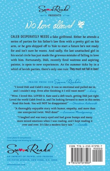 It's all fun and parties until someone falls in love in this glitzy, glamorous modern fairy tale starring a refreshingly self-assured heroine. Caleb desperately needs a fake girlfriend. Either he attends a series of parties for his father's law firm with a pretty girl on his arm, or he gets shipped off to Yale to start a future he's not ready for and isn't sure he wants. And sadly, the last unattached girl in his social circle has just made the grievous mistake of falling in love with him. Fortunately, Didi, recently fired waitress and aspiring painter, is open to new experiences. As the summer ticks by in a whirl of lavish parties, there's only one rule: they must not fall in love! Chosen by readers like you for Macmillan's young adult imprint Swoon Reads, Kate Evangelista's novel No Love Allowed is filled with the perfect mixture of humor and hope. Praise for No Love Allowed: "Evangelista takes a familiar story of young love and makes it fresh." - VOYA "The perfect YA contemporary romance." -Stephanie, Bookfever "It's like a modern fairy tale." -Camelle, reader on SwoonReads.com