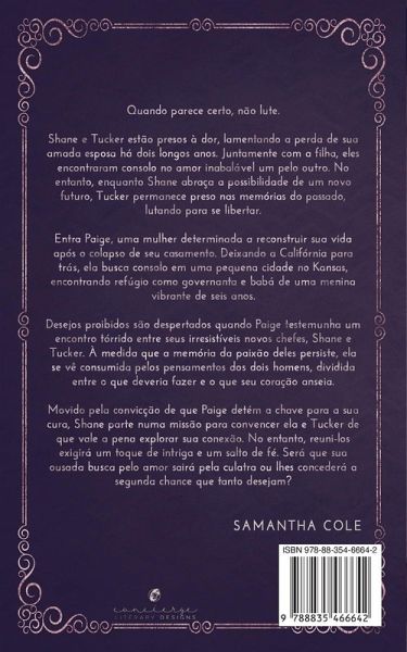 Shane e Tucker estão presos à dor, lamentando a perda de sua amada esposa há dois longos anos. Juntamente com a filha, eles encontraram consolo no amor inabalável um pelo outro. No entanto, enquanto Shane abraça a possibilidade de um novo futuro, Tucker permanece preso nas memórias do passado, lutando para se libertar. Entra Paige, uma mulher determinada a reconstruir sua vida após o colapso de seu casamento. Deixando a Califórnia para trás, ela busca consolo em uma pequena cidade no Kansas, encontrando refúgio como governanta e babá de uma menina vibrante de seis anos. Desejos proibidos são despertados quando Paige testemunha um encontro tórrido entre seus irresistíveis novos chefes, Shane e Tucker. À medida que a memória da paixão deles persiste, ela se vê consumida pelos pensamentos dos dois homens, dividida entre o que deveria fazer e o que seu coração anseia. Quando parece certo, não lute. Shane e Tucker estão presos à dor, lamentando a perda de sua amada esposa há dois longos anos. Juntamente com a filha, eles encontraram consolo no amor inabalável um pelo outro. No entanto, enquanto Shane abraça a possibilidade de um novo futuro, Tucker permanece preso nas memórias do passado, lutando para se libertar. Entra Paige, uma mulher determinada a reconstruir sua vida após o colapso de seu casamento. Deixando a Califórnia para trás, ela busca consolo em uma pequena cidade no Kansas, encontrando refúgio como governanta e babá de uma menina vibrante de seis anos. Desejos proibidos são despertados quando Paige testemunha um encontro tórrido entre seus irresistíveis novos chefes, Shane e Tucker. À medida que a memória da paixão deles persiste, ela se vê consumida pelos pensamentos dos dois homens, dividida entre o que deveria fazer e o que seu coração anseia. Movido pela convicção de que Paige detém a chave para a sua cura, Shane parte numa missão para convencer ela e Tucker de que vale a pena explorar sua conexão. No entanto, reuni-los exigirá um toque de intriga e um salto de fé. Será que sua ousada busca pelo amor sairá pela culatra ou lhes concederá a segunda chance que tanto desejam?