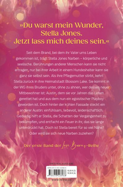 Seit dem Brand, bei dem ihr Vater ums Leben gekommen ist, trägt Stella Jones Narben - körperliche und seelische. Berührungen anderer Menschen kann sie nicht ertragen, nur bei ihrer Arbeit in einem Hundeshelter kann sie ganz sie selbst sein. Als ihre Pflegemutter stirbt, kehrt Stella zurück in ihre Heimatstadt Blossom Lake. Sie kommt in der WG ihres großen Bruders unter, ohne zu ahnen, wer dessen neuer Mitbewohner ist: Austin, dem sie vor Jahren das Leben gerettet und der sich nun zu einem egoistischen Playboy entwickelt hat. Doch hinter der kühlen Fassade steckt ein anderer Austin: einfühlsam, liebevoll, leidenschaftlich. Geduldig hilft er Stella, die Schatten der Vergangenheit zu bekämpfen, und entfacht ein Feuer in ihr, das sie lange unterdrückt hat. Doch ist Stella bereit für so viel Nähe? Oder wird sie sich neue Brandnarben zuziehen?