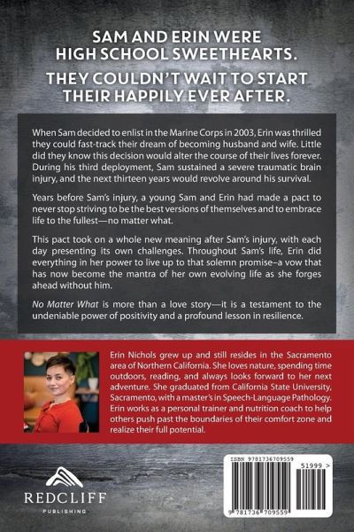Sam and Erin were high school sweethearts. When Sam decided to join the Marine Corps in 2003, the trajectory of their lives was sealed. Sam ultimately sustained a severe traumatic brain injury, and the next thirteen years centered around Sam's survival. Despite their tragedy, a young Sam and Erin made a promise to each other-a promise to never stop striving to be the best versions of themselves, to live life to the fullest, and to never give up hope. Erin did everything in her power to live up to that promise during Sam's life, which has now become her mantra as she continues on without him. This is a love story, a testament to the power of positivity, and a lesson in resilience.