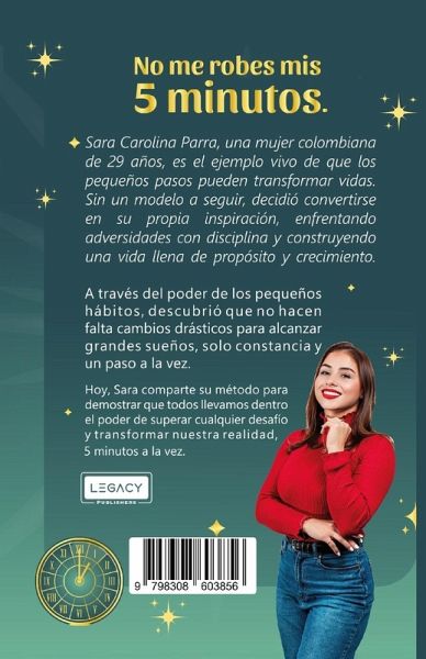 Sara Carolina Parra, una mujer colombiana de 29 años, es el ejemplo vivo de que los pequeños pasos pueden transformar vidas. Sin un modelo a seguir, decidió convertirse en su propia inspiración, enfrentando adversidades con disciplina y construyendo una vida llena de propósito y crecimiento. A través del poder de los pequeños hábitos, descubrió que no hacen falta cambio drásticos para alcanzar grandes sueños, solo constancia y un paso a la vez. Hoy, Sara comparte su métido para demostrar que todos llevamos dentro el poder de superar cualquier desafío y transformar nuestra realidad, 5 minutos a la vez.