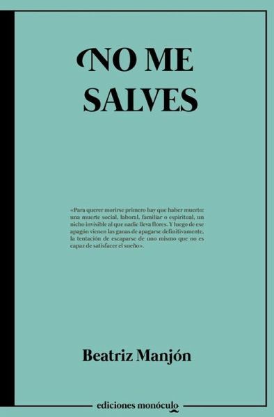 La vida de Mario Estévez Blasco no es tanto una vida como un ensayo de la muerte. Aquejado de un trastorno límite de la personalidad, no hay tarea a la que haya consagrado más tiempo que a la de zafarse de esa tortura llamada existencia. Un intento, dos, tres, cuatro? Todos acometidos con idéntico fracaso. O éxito, según quién lo mire. Como si para morir fuese indispensable no querer hacerlo. Como si la vida, igual que la felicidad, se aferrase a quien menos la pretende. No me salves narra la tragedia de un hombre que concibe la muerte como el único analgésico eficaz contra el dolor de la vida, de un hombre que, azotado por los caprichos de un destino que en ocasiones parece ensañarse, sufre la peor de las condenas: la de no encontrarle un sentido a esta existencia a la que hemos sido arrojados.