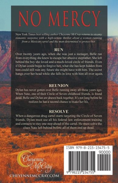 Run Over twenty years ago, when she was just a teenager, Belle ran from everything she knew to escape her abusive stepfather. She left behind the boy she loved and a much-loved circle of friends. Even if Dylan could begin to forgive her, what she has kept hidden from him could still ruin any future she might have with him. The secret hangs over her head while she falls in love with him all over again. Reunion Dylan has never gotten over Belle running away all those years ago. When Nate, one of their Circle of Seven childhood friends, is found dead, Belle and Dylan are drawn back together. It's not long before he realizes he has a second chance to make her his. Resolve When a dangerous drug cartel starts targeting the Circle of Seven friends, Dylan must use all his federal law enforcement training and contacts to stay one step ahead of the cartel. He must solve the clues Nate left behind before all of them end up dead.