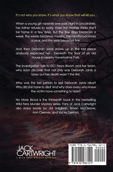 It's not who you know, it's what you know that will kill you... When a young girl vanishes one dark night in Lincolnshire, her father refuses to worry. Even the mother thinks she'll be home in a few days. But the few days becomes a week, the weeks becomes months, the months becomes a year, and the year becomes five. And then Deborah Jarvis shows up in the last place anybody expected her - beneath the floor of an old house in nearby Haverholme Park. The investigation falls to DCI Freya Bloom and her team, who soon discover that not only was Deborah Jarvis a loner, but her death wasn't the first. With only a handful of old photos to go on, Freya and the team must tear open wounds the quiet Lincolnshire community had thought were healed. But what the team find will push them to their absolute limits. Who was the last person to see Deborah Jarvis alive? Why did she have to die? And why does every who knew the victim have something to hide? No More Blood is the thirteenth book in the bestselling Wild Fens Murder Mystery series. Fans of Jack Cartwright also enjoy books by JM Dalgliesh, Simon McCleave, Ann Cleeves, and Val McDermid.