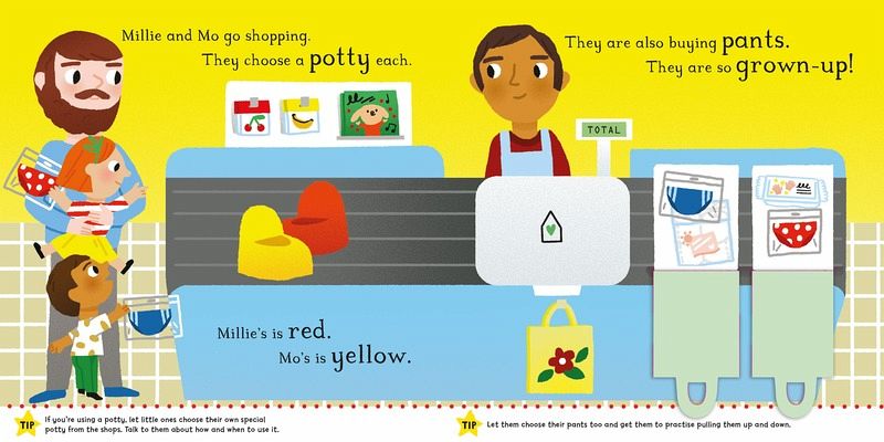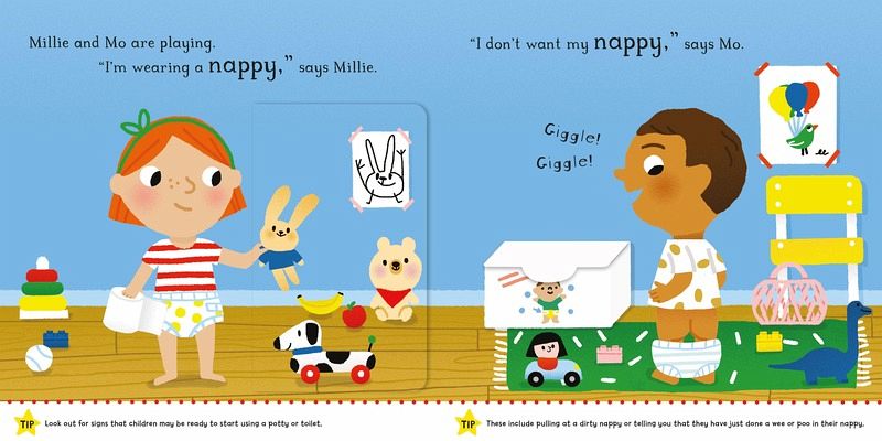 Gold Winner of the Junior Design Awards Best Baby Books 0-2 Years. Discover the perfect potty-training companion with No More Nappies, a delightful interactive book that helps little ones (and their parents) navigate the potty routine with ease. Join Millie and Mo as they get ready to ditch the nappies and learn how to use the potty. Follow them as they go shopping for a special potty, choose their own pants and finally use the potty for the first time in this fun-filled novelty book, complete with engaging flaps and mechanisms. Each page features helpful potty-training tips for parents and carers, endorsed by The Good Play Guide and leading Early Years Consultant, Dr Amanda Gummer. With charming illustrations from Marion Cocklico, No More Nappies is the perfect potty book to share with little ones. The Big Steps series is designed to support toddlers and parents through everyday experiences. For more helpful tips, read No More Dummies, I'm Not Sleepy, and We're Having a Baby.