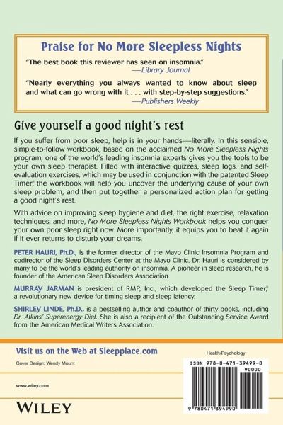 Welcome to the Program. Becoming Your Own Sleep Therapist. Three Steps Every Poor Sleeper Should Take. The Room You Sleep In. Types and Nature of Insomnia. Questionnaires to Help You Determine the Cause of Your PoorSleep. Solutions to Sleep Caused by Poor Sleep Hygiene. Solutions to Poor Sleep Caused by Errors in Beliefs andAttitudes. Solutions to Poor Sleep Caused by Stress and PsychologicalProblems. Solutions to Poor Sleep Caused by Lifestyle. How to Reset Your Sleep Clock. Solutions to Poor Sleep Caused by Medical Problems. Solutions to Primary Insomnia. Solutions to Night Work, Jet Lag, and Seasonal Affective Disorder(SAD). Sleeping Pills. How to Kick the Sleeping Pill Habit.