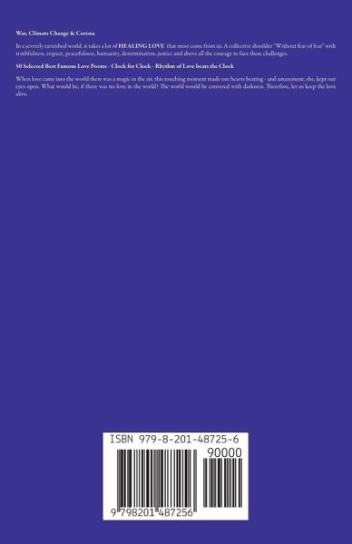 War, Climate Change & Corona In a severely tarnished world, it takes a lot of HEALING LOVE that must come from us. A collective shoulder "Without fear of fear" with truthfulness, respect, peacefulness, humanity, determination, justice and above all the courage to face these challenges. 50 Selected Best Famous Love Poems - Clock for Clock - Rhythm of Love beats the Clock When love came into the world there was a magic in the air, this touching moment made our hearts beating - and amazement, she, kept our eyes open. What would be, if there was no love in the world? The world would be convered with darkness. Therefore, let us keep the love alive.