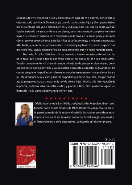 Cuando la violencia en la casa de mis padres, y el abuso físico y emocional que me causaba, pensé que al casarme todo terminaría. Sin embargo, cuando nacieron mis hijos y él empezó a beber, me di cuenta de que ya no estaba bien allí y le dije que me iría, que no podía vivir así. Estaba tratando de escapar de ese ambiente, pero me amenazó con que no me iría con mis hijos, que se quedarían con él. Fue entonces cuando miré mi prisión con la llave en la mano porque no sabía cómo resolver ese problema, pero los niños estarían conmigo y mi salud empeoraba. Más tarde, a pesar de ser profesional en Cosmetología y tener mi propio negocio que me hacía feliz, seguía siendo infeliz en casa, sintiendo que no había resuelto nada. Después, fui a los Estados Unidos cuando mi salud se estaba deteriorando, pero tuve que llevar a todos conmigo porque no podía dejar a los niños atrás. Desafortunadamente, mi situación empeoró más tarde porque el alcoholismo de mi esposo no se podía controlar y ya no estaba dispuesta a soportarlo. Cuando se dio cuenta de que ya no podía controlarme, una noche amenazó con matar a los niños y a mí. Me di cuenta de que esas palabras no podían quedarse en el aire, así que busqué ayuda porque no iba a arriesgar más la vida de mis hijos. Gracias a la intervención de la policía, pudimos salvar nuestras vidas, y gracias a Dios, pudieron lograr sus metas de ir a la universidad y ahora vivir en paz. Cuando se ama, estoy abarcando de lo que estoy hablando, la esencia de lo que trata la historia.