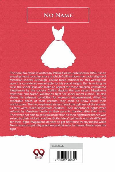 The book No Name is written by Wilkie Collins, published in 1862. It is an amazing heart touching story in which Collins shows the social stigma of Victorian society. Although Collins faced criticism for this writing but now it is considered remarkable for his social insight. By his writing he raise the social issue and make an appeal for those children, considered illegitimate by the society. Collins depicts the two sisters Magdalene Vanstone and Norah Vanstone's fight for social moral justice. He also shows his extreme conviction for women's empowerment. After the miserable death of their parents, they came to know about their misfortunes. The two orphaned sisters faced the ugliness of the society, as they were called illegitimate children. Their inheritance rights were refused by Vanstone family as their parents married after their birth. They were not able to get legal protection so their rightful hesitance was seized by their wicked relatives. Both sisters' opinion is entirely different for their fight. Magdalene decides to get heritance by any means while Norah wants to get it by goodness and fairness. In the end Norah wins the fight .