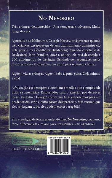 Três crianças desaparecidas. Uma tempestade selvagem. Muito longe de casa. A jornalista de Melbourne, Georgie Harvey, está presente quando três crianças desaparecem de um acampamento administrado pela polícia na Cordilheira Dandenong. Quando o policial de Daylesford, John Franklin, ouve a notícia, ele está destacado a 200 quilômetros de distância. Sentindo-se responsável pelos jovens irmãos, ele abandona seu posto para se juntar à busca. Alguém viu as crianças. Alguém sabe alguma coisa. Cada minuto é vital. A frustração e o desespero aumentam à medida que a tempestade polar se intensifica. Empurrados para o exterior por detetives locais, Franklin e Georgie encontram links cibernéticos para um predador em série e outra garota desaparecida. Mas mesmo que eles arrisquem tudo, eles podem evitar a tragédia? Edição impressa grande