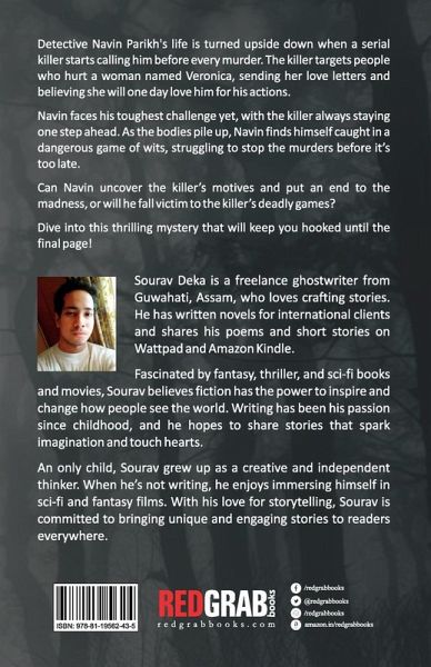 A killer calls him before every murder. Can he stop the bloodshed before it's too late? Detective Navin Parikh's life is turned upside down when a serial killer begins calling him before each murder. The killer targets those who have harmed a woman named Veronica, believing that by sending her love letters and avenging her, she will one day love him in return. Now, Navin faces his toughest challenge yet. With the killer always one step ahead, the bodies keep piling up, and time is running out. Caught in a deadly game of wits, he must uncover the truth before he becomes the next victim.Can Navin expose the killer's motives and end the madness, or will he fall prey to a murderer who sees himself as a hero? A gripping thriller packed with suspense, this heart-pounding mystery will keep you hooked until the very last page!